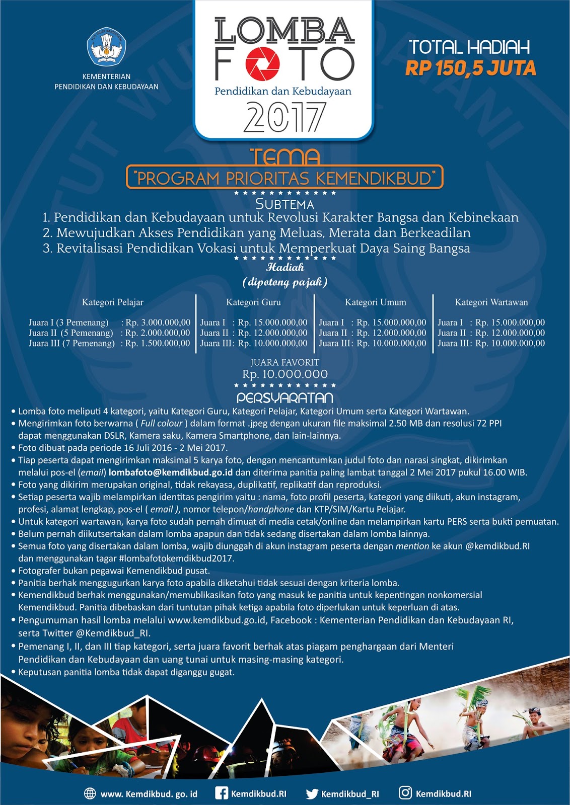 Info Aneka Lomba Lomba Foto 2017 dari Kemendikbud Berhadiah 150 Juta